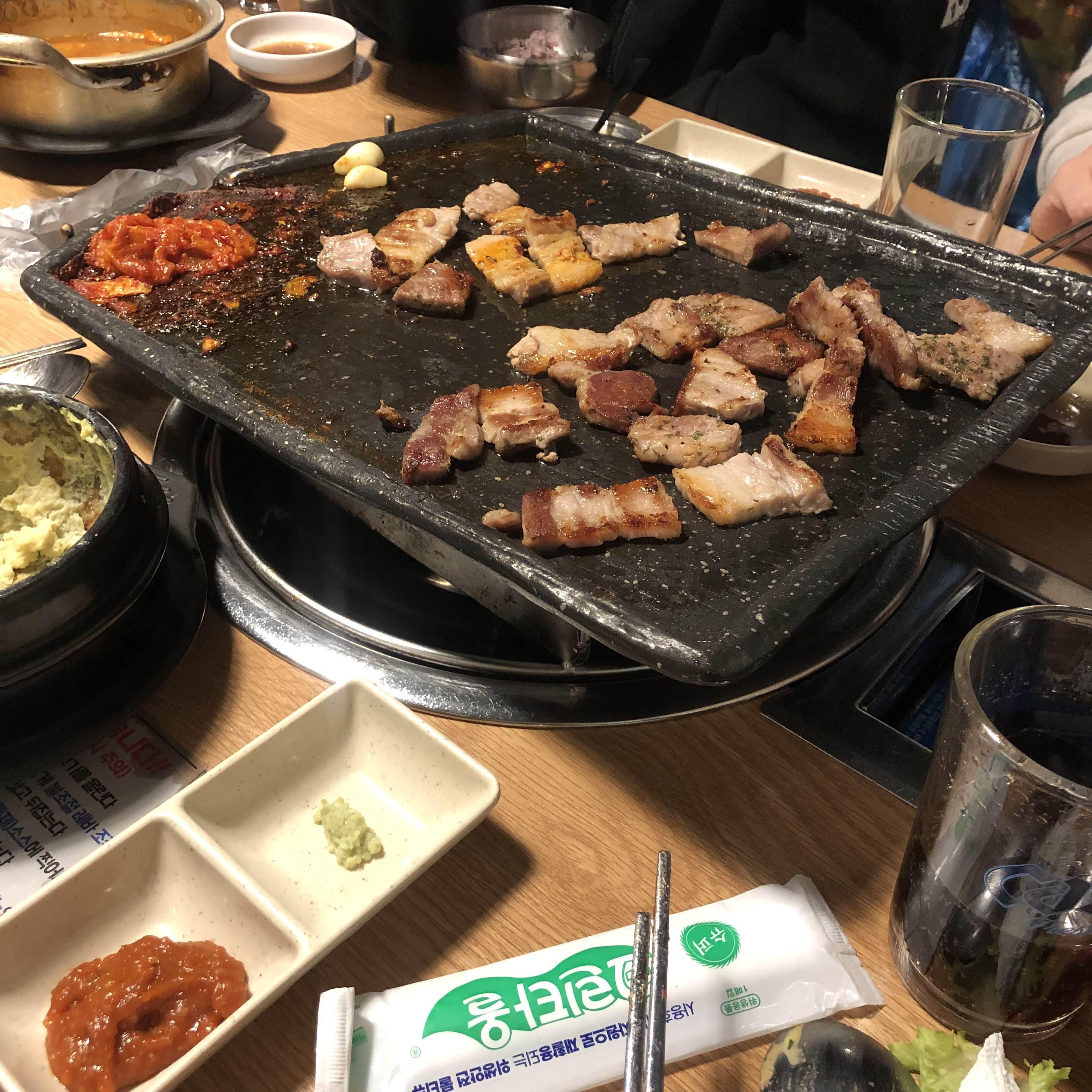 음식 사진을 좀 많이 잘 못찍어서 더러워보이지만 굉장히 맛있었던 삼겹살